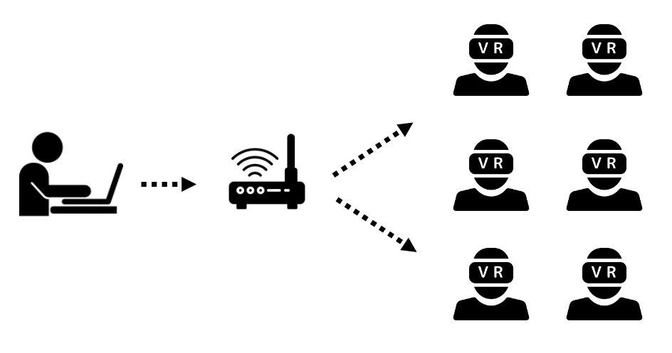 VRヘッドセット、パソコン、タブレットPCなどの複数の異なるVR端末を、パソコンやタブレットPCによってコントロールします。